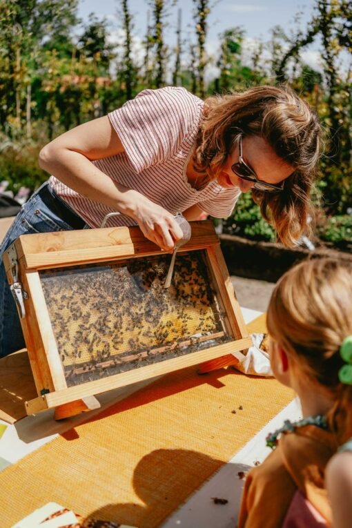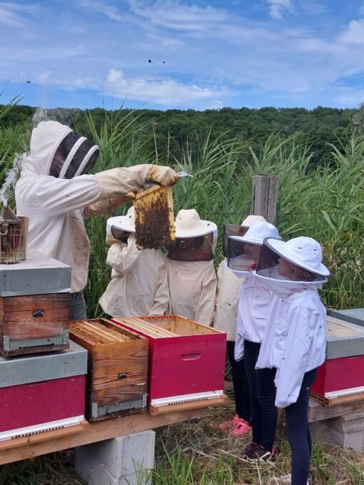 L’apicultrice pourra leur expliquer la vie de la colonie et leur faire partager un moment dont ils se souviendront longtemps !